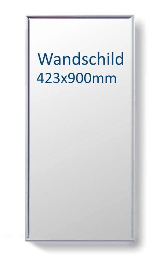 In einen robusten Aluminiumrahmen, der mit Stahlwinkeln verschraubt ist, wird eine silber eloxierte Alu-Verbundplatte eingeklebt. Die Fixbeschriftung kann mit Digitaldruck, Siebdruck oder Folienbuchstaben erfolgen.