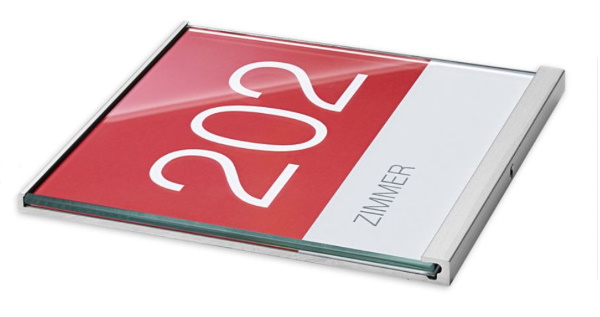 Das Türschild der Serie KRISTALLINO.w zeichnet sich durch seine einfache und flache Bauweise aus. Es besteht aus einem Aluminiumprofil, welches auf der einen Seite einen breiteren Rand als auf der anderen Seite hat. Die Texteinlage wird mit einer antireflektierenden Abdeckung aus Acrylglas geschützt. Das Schild kann sowohl waagrecht, als auch senkrecht aufgehängt werden und ist damit sehr flexibel einsetzbar.