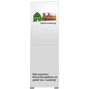 Der Aufsteller wird komplett vormontiert geliefert und kann dadurch sofort beschriftet und montiert werden.